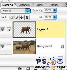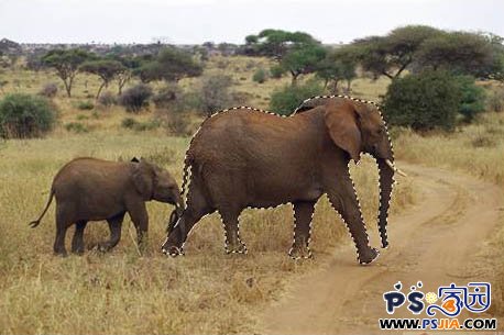 1、用磁性套索工具套出大象,Ctrl+J复制选区部分到新的图层。 |