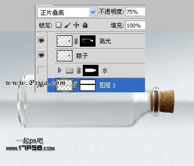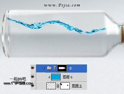 12、下面我们为瓶子添加一些东西。顶部建新组,取名水,调出瓶子选区,添加蒙版。