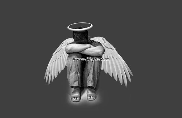 9、打开翅膀图片,把它摆放在天使身后。 10、新建图层,混合模式设为正片叠底,然后建立一个剪贴蒙版。用黑色的软笔刷(B)在天使的翅膀上画一些阴影