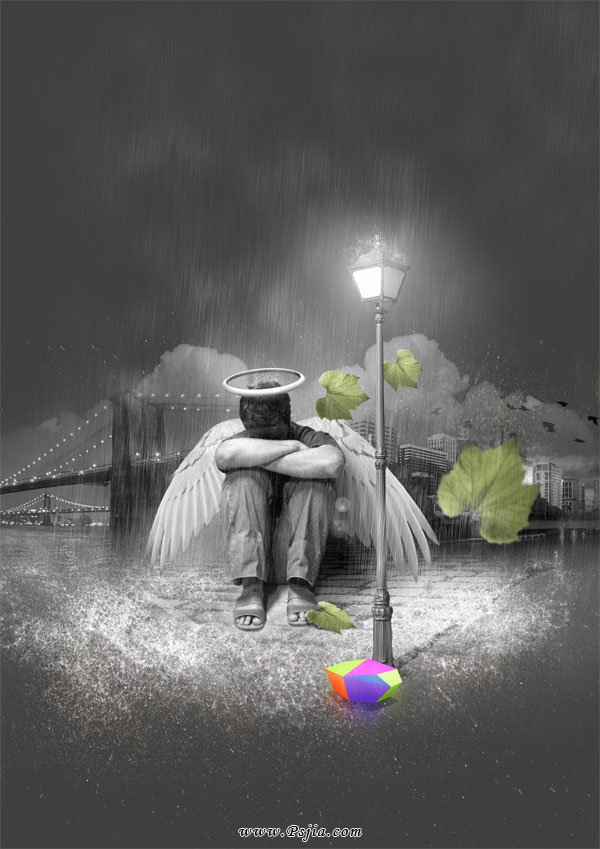 合成街灯下淋雨的天使(6)