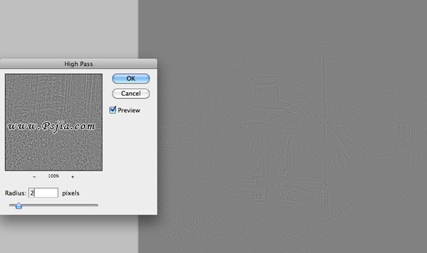 38、使用快捷键Ctrl + Shift + A,Ctrl + C和Ctrl +V创建所有图层的整体拷贝。执行滤镜>其他>高反差保留,参数如下图,滞后混合模式改为强光。这个效果会使图片锐化。大功告成了!