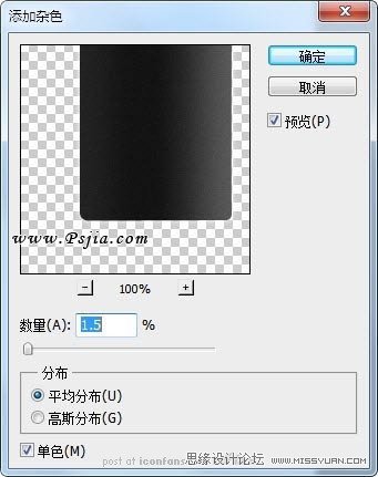 4、这一步完之后将其图层转换为智能图层,并为其添加杂色。这一步完成之后你将得到以下图形。