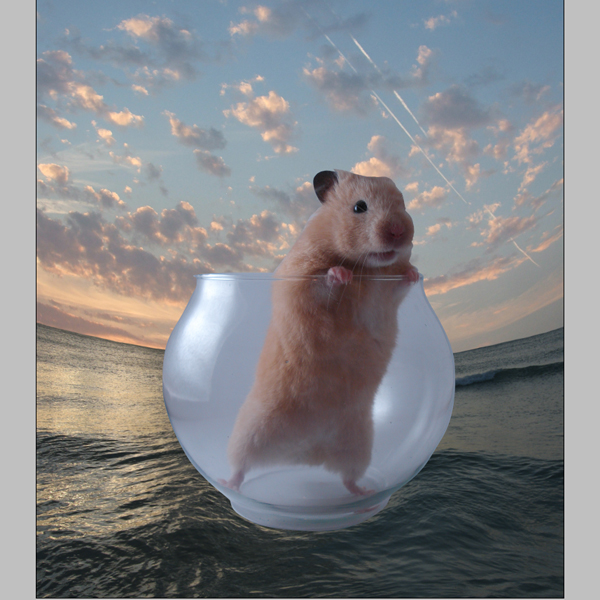 剪下有趣的仓鼠用钢笔工具,并将其放置在中间的海洋。