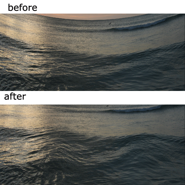 由于变形工具使图像平面的外观,我们需要做一些波液化(滤镜>液化)。使用下面的图片作为参考波看起来应该如何操作与液化后。