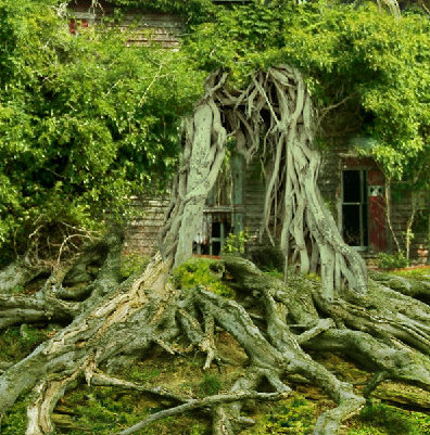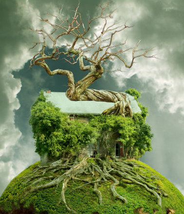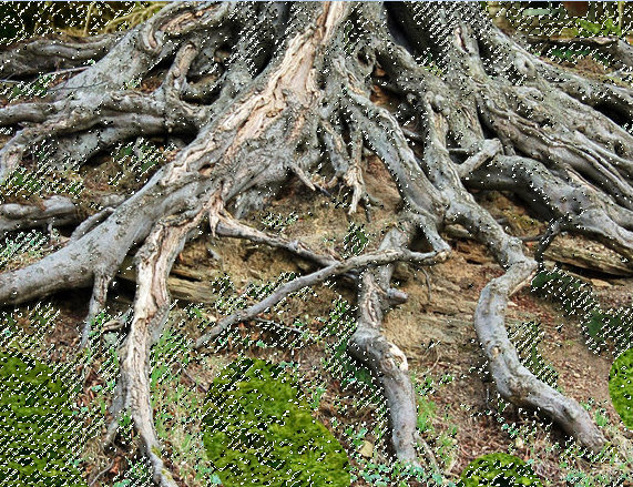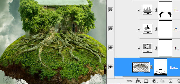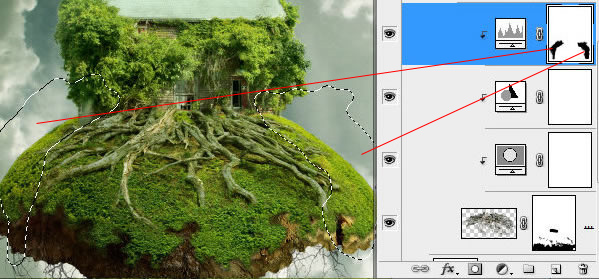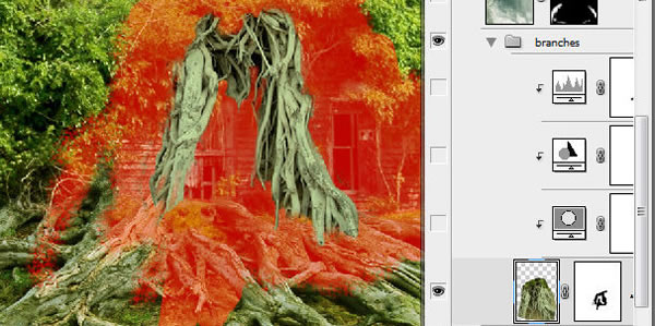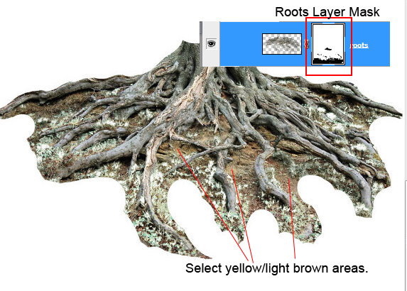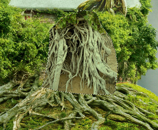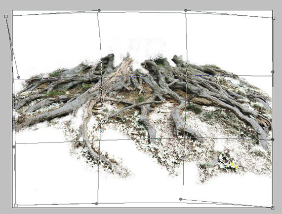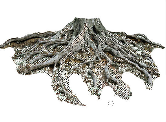 将上一步重复几次。最后,你可以使用有纹理的笔刷在没有色彩范围的选区下抹除和修改根部的轮廓。背景不需要完全的清除。接下来你可以使用扭曲变换改变根的形状,使其更接近球形。