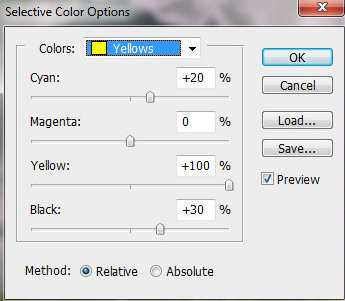保持上个步骤的选区不变,这次选中”根”图层的蒙版层(提醒下,在步骤二十八里选中的是”根”图层而不是根的蒙版层),并且抹掉根上的绿点。接下来选择色彩范围,然后使用取色吸管工具点一下除了根颜色外的其他颜色(黄色,淡综色)如下图,载入选区。再次抹去背景的小点,不要抹掉根部。现在来创建一个临时的白色底层看看效果怎么样。