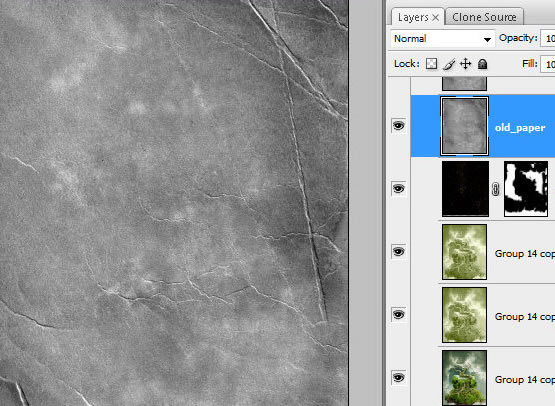 插入”旧纸片”图片素材,执行 图像 > 调整 > 黑白(预设值为默认值)。将其图层混合模式改为柔光,不透明度为79%。