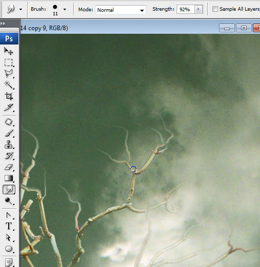 使用”涂抹工具”修饰树枝的细节。