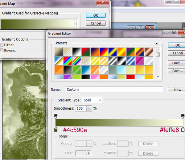 复制一层刚才润饰过的图层,执行 图像 > 调整 > 渐变映射。