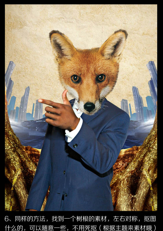 6、同样的方法,找到一个树根的素材,左右对称,抠图什么的,可以随意一些。