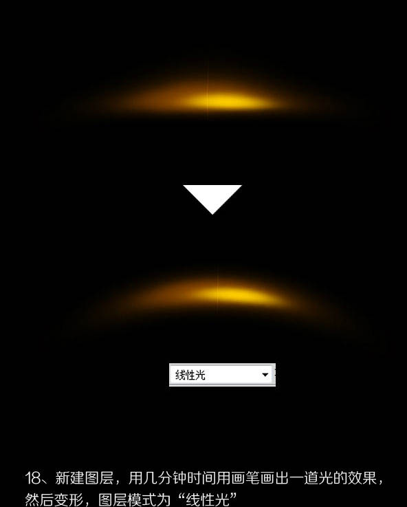 18、新建图层,用几分钟时间,用画笔画出一道光的效果,然后变形,图层模式为“线性光”。