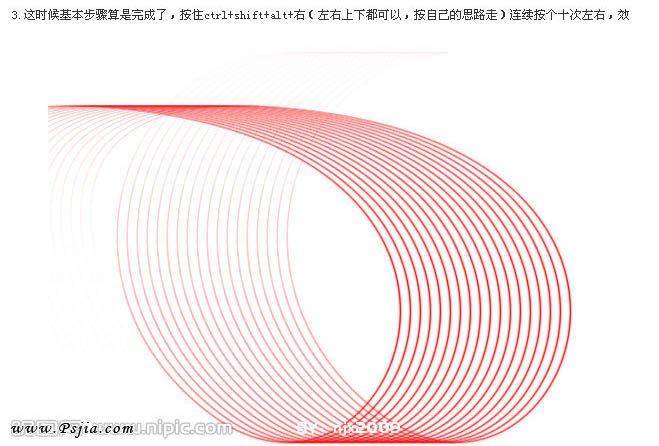 3、这时候基本步骤就算完成了,按住Ctrl + Shift + Alt + →方向键,连续复制10次左右,效果如下图。
