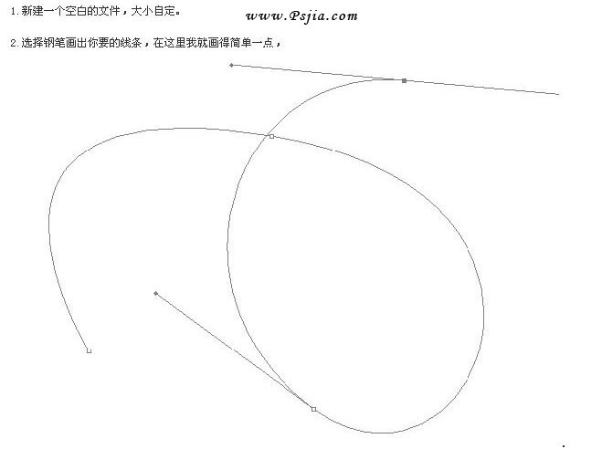 1、新建一个大小自定的文档,背景填充白色。 2、选择钢笔工具勾出自己想要的线条,可以勾得简单一点。 |