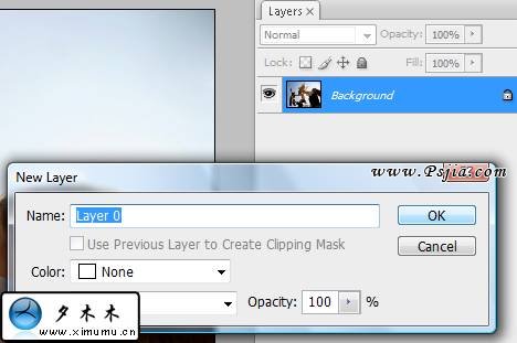 2.因为导入的图片在背景层上,不能直接对其操作,所以要把背景层转换成普通层.双击背景层,在弹出的对话框选择"OK",并命名:layer 0.