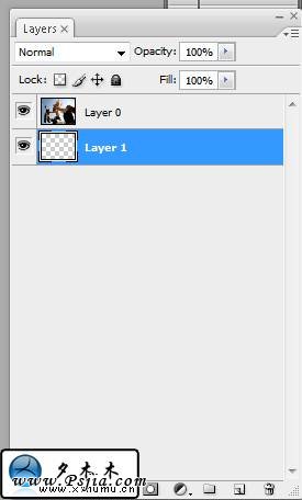 3.在图层面板上点击"新建图层"图标来新建一个图层,并命名:layer 1.使用移动工个把layer 1拖到layer 0的下面.