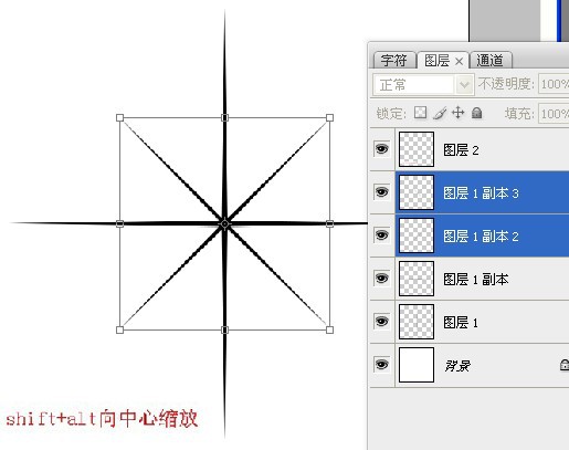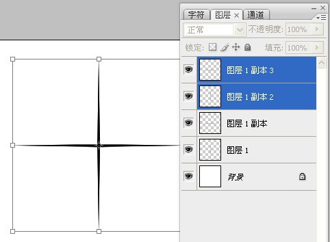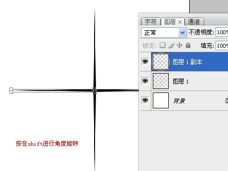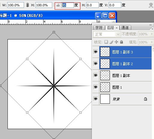 复制一个:可以按住shift进行角度旋转(ps默认旋转角度都是15度)