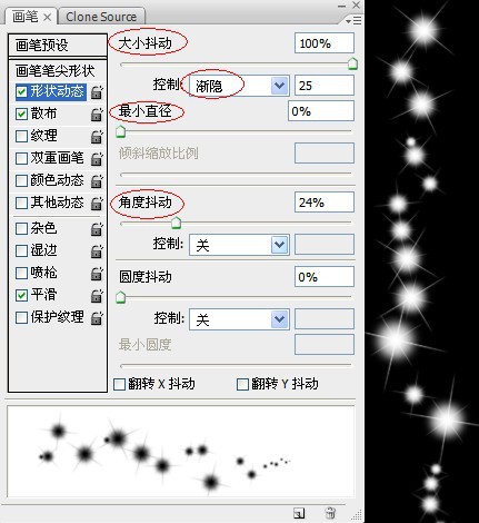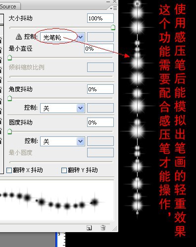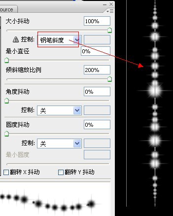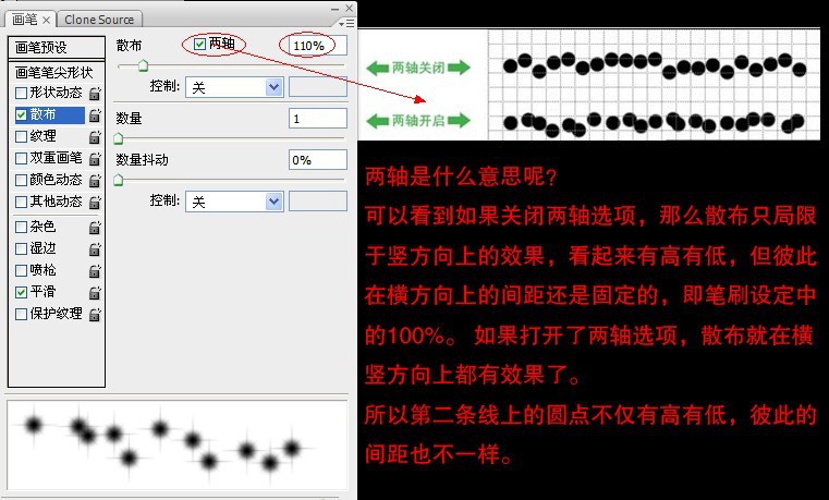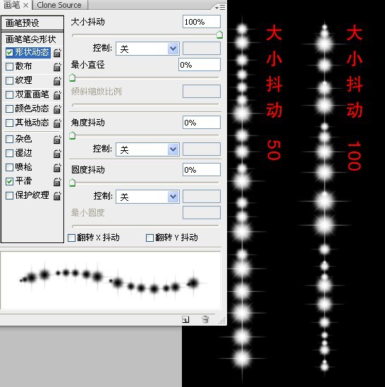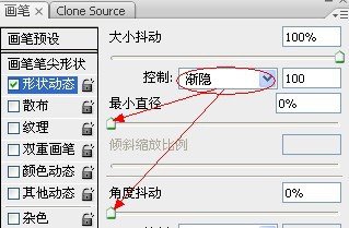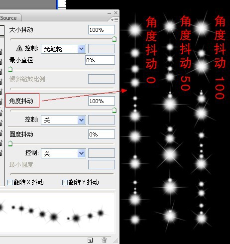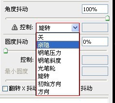 角度抖动:显而易见就是改变每一个笔刷的角度