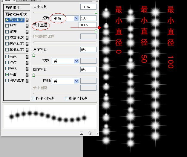 最小直径则是控制最小的笔刷和最大的笔刷的比列的