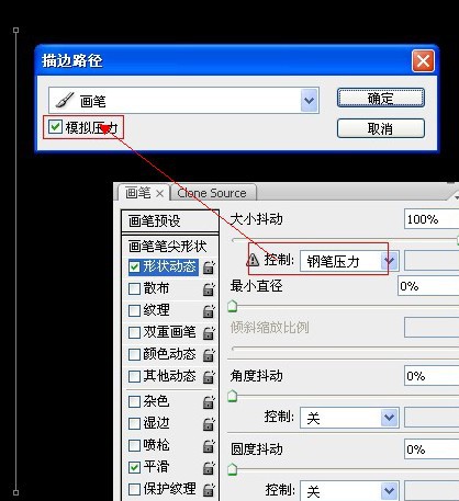 控制里面的渐隐其实就是步长,从大到小的步长,数值越大,渐隐越明显,其他的钢笔压力等也是同样的道理,希望大家多多尝试。