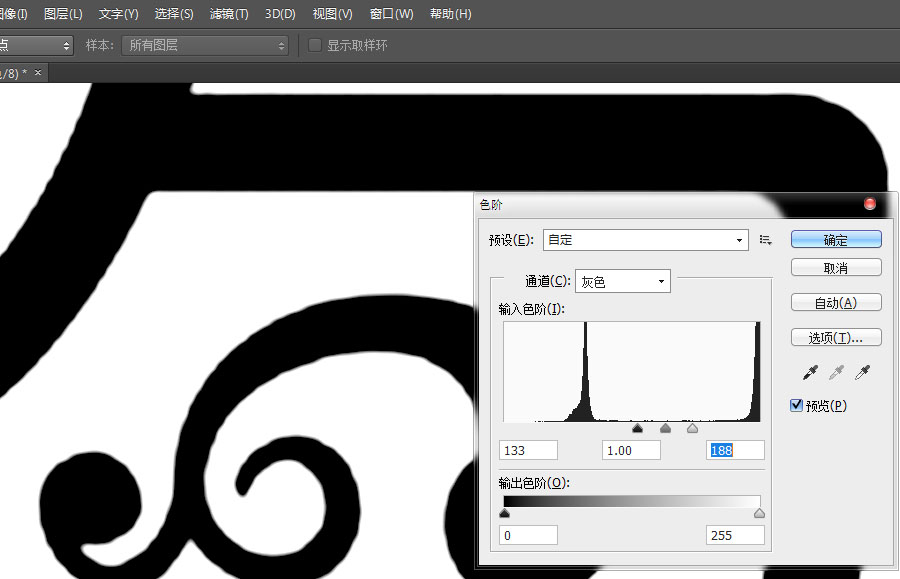第三步,调整色阶,加强黑白对比,黑白对比越明显,识别越接近原图;