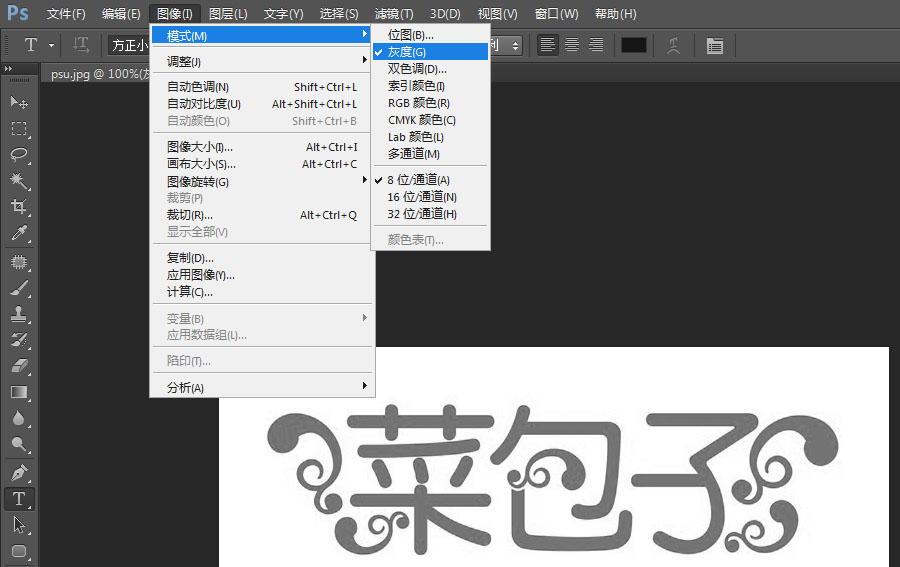 先把图片拖到Photoshop,第一步,先把图片设置灰度,这样可以减少文件容量,不至于描摹的时候花太长时间;