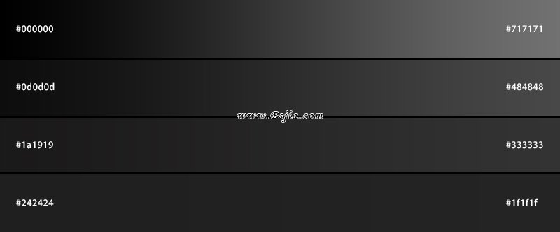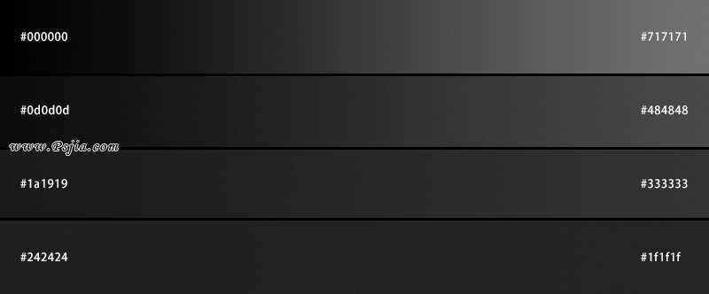 关于“色带”,很多人都误以为是显卡问题或者显示问题,在其他设备上看就会消失,其实这是错的,色带是在渐变时由于颜色间色值差异过小而产生的一种条纹,通常颜色越接近,色相越统一,其产生的色带就越明显,如下是一组灰色渐变,大家可以明显的观测到,颜色相近的渐变产生了较大的色带,而反之则变得很小且数量更多。