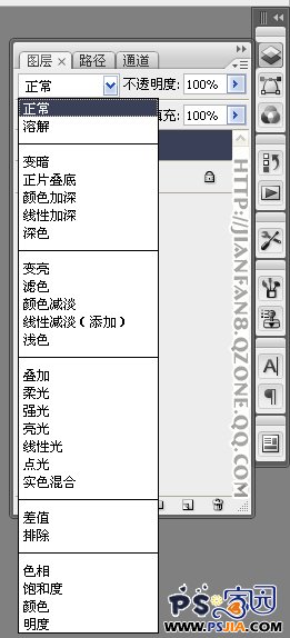 后面将有提到“图层模式”的应用。在此先熟识下位置。