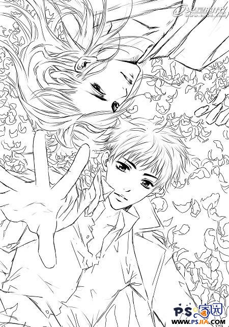 2、接下来慢慢地刻画细节,作为一幅漫画,线稿是很重要的,画的时候要注意把握好细节的变化。当然,要画出好的线条,除了技术,手绘板的性能也很重要,这次我试用的是友基的RAINBOW数位板,它可以很细腻地表现出线条的粗细浅淡,我觉得作为一块入门级的板子,有如此高的性价比还是蛮值得推荐的。