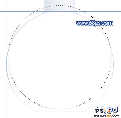 | 4、新建一个图层,按Ctrl + Alt + G 与前一图层编组。再在新建的图层下面新建一个图层,选择椭圆选框工具拉出图6所示的正圆选区。可以拉两条相交的参照线作为参照。 |