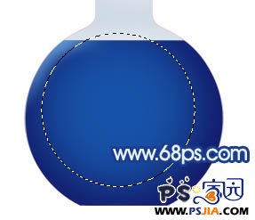 | 10、用椭圆选框工具拉出下图所示的正圆选区,羽化25个像素后填充颜色:#1652A7。 |