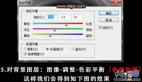 5、按Ctrl + B 调整色彩平衡,对中间调进行调整,参数设置如下图,大致调成巧克力的颜色。