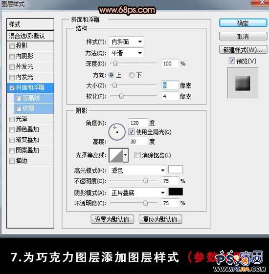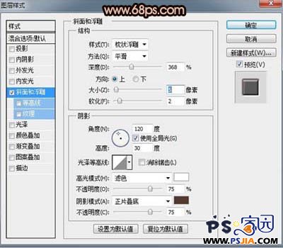 7、对当前图层执行:图层 > 图层样式 > 斜面和浮雕,参数设置如下图。