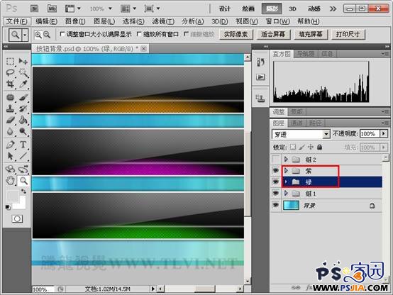 20、参照制作“组 1”图层组的方法,制作出“紫”和“绿”图层组,效果如图所示。