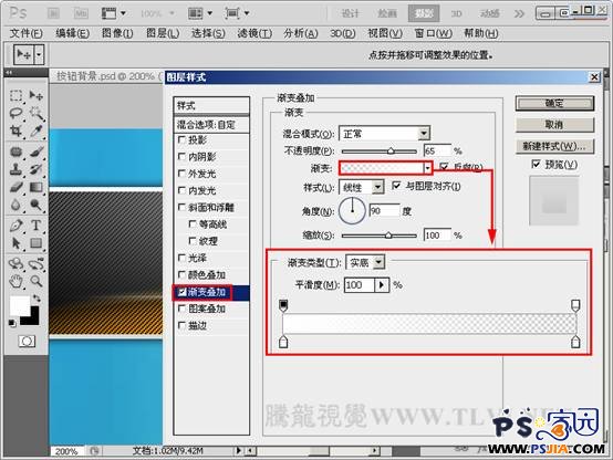 17、为“高光”图层添加“渐变叠加”图层样式,并设置其各项参数。