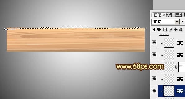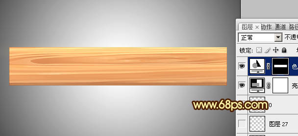19、新建一个图层,用钢笔工具勾出下图所示的选区,填充颜色:#FFEBB5。 图24 20、木纹部分大致刻画好的效果如下图。 图25 21、创建亮度/对比度调整图层
