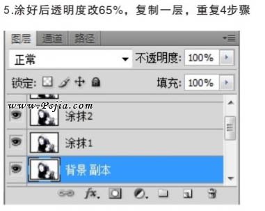 5、涂好后透明改为:65%,复制一层,重复第四步操作。
