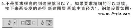 6、不是要求很高的到这里就可以了,如果要求精细的可以继续。接下来画头发的路径。新建一个图层,画笔主径为1,钢笔设置如下图。