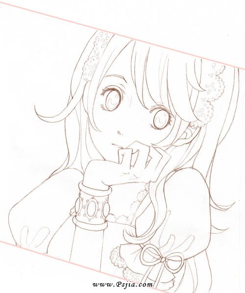 本教程的画面有点倾斜的,鼠绘角度有点不同,不过方法还是一样。只要把线稿画好后,后期就是上色及处理细节的功夫。 最终效果 1、铅笔线稿扫入电脑中,清理干净。 要掌握好画的