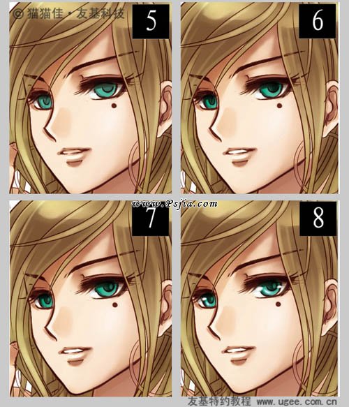 8、眼睛:眼睛是一个至关重要的部位,大家在画之前要先理解眼睛的基本结构,大家可以在线稿层上面新建图层,灵活地使用图层画出眼内的高光,眼线的部分可以稍稍加深,让人物显得魅惑一点。