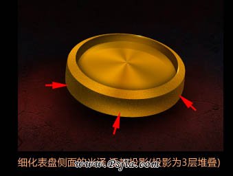 6、细化表盘侧面的光泽,添加投影,投影为3层堆叠。