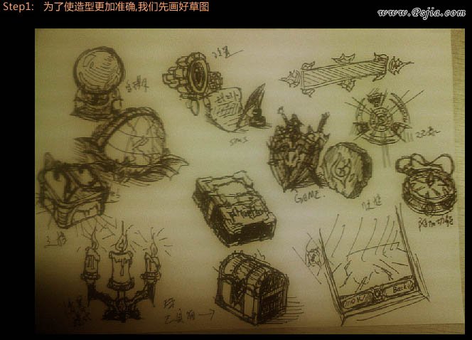 本教程介绍较为古典的图标制作方法。重点是金属表面的质感渲染。图标的构成不是很规则,需要按照一定的层次慢慢来制作与渲染。 最终效果 1、为了使造型更加准确,我们先画好草
