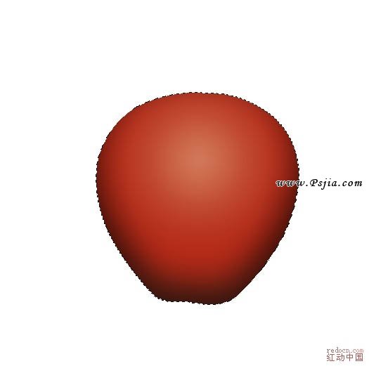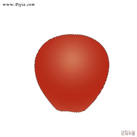 2、Ctrl + 回车建立选区,选择渐变工具,径向渐变,渐变色前景色:#b52b18 背景色:#d17759,拉出下面苹果的渐变。