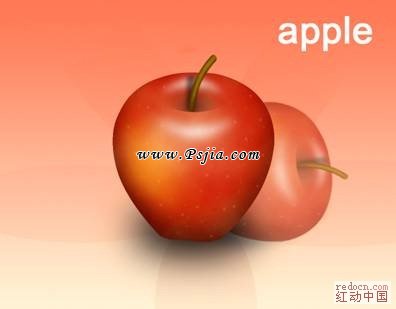 苹果的制作重点是表面的质感和光感的渲染。制作之前最好是先拿一些真实的苹果图片参靠一下,然后设定光源方向,再慢慢渲染光感,部分纹理可以用滤镜来完成。