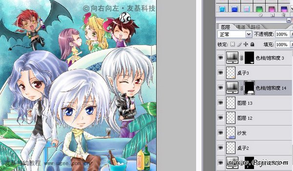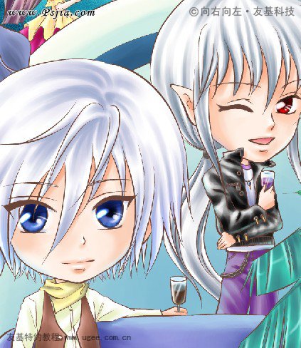9.当两个人都是同一个颜色的头发时,尽量使前面的人物的颜色鲜明点,后面的稍微暗一点,这样更能突显出主次关系。