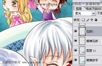 11.楼梯的花纹直接用素材,执行柔光,让楼梯显得更活泼一点。