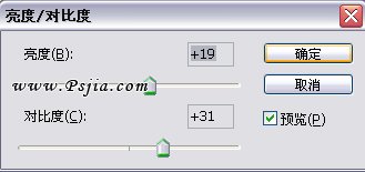 21.选择【图像】-【调整】-【亮度/对比度】工具,加强整个画面的对比度。参数设置如图所示: