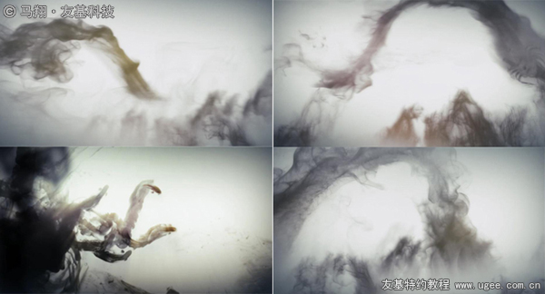 在动笔之前,我找了一些资料作为绘画参考,记得央视的那则水墨风的广告吗?里面墨汁滴入水里散开的形状非常之美,再配上一些明度纯度不高的和谐邻近色,效果好极了!