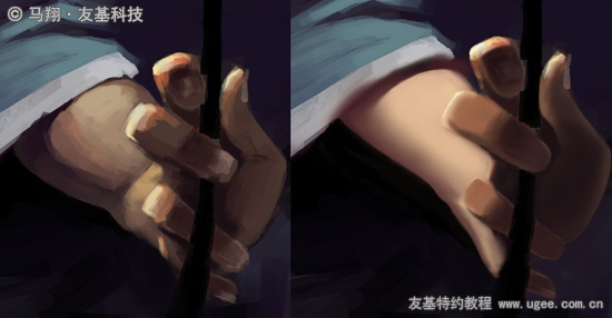 13.接着对手部进行进一步的细致刻画。