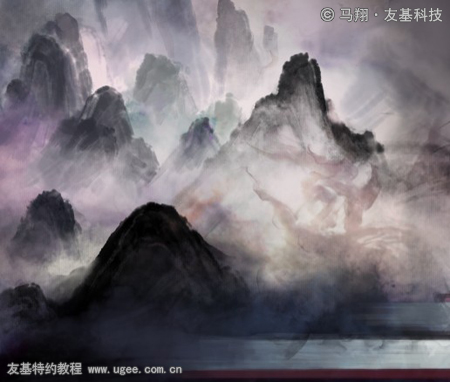 11.接着就对背景的山做进一步刻画和补充,其次是颜色的调整。