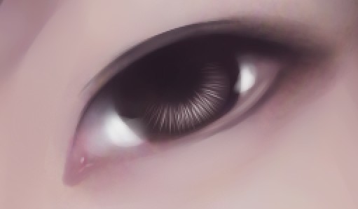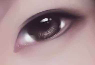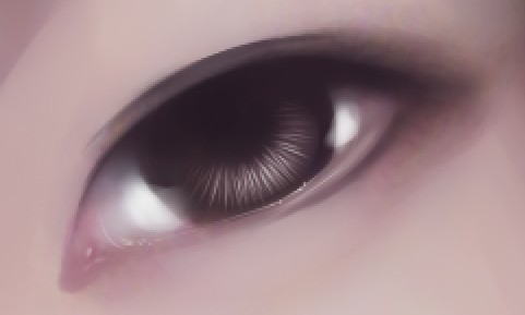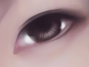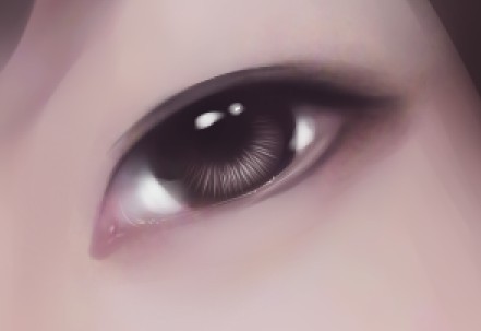 用蓝色区的亮色画出全眼球高光 画出泪腺高光 画出下眼睑处泪水的高光 然后就是很提画面感的眼球高光了 其实高光是非常多变的 它可以是一个点 也可以